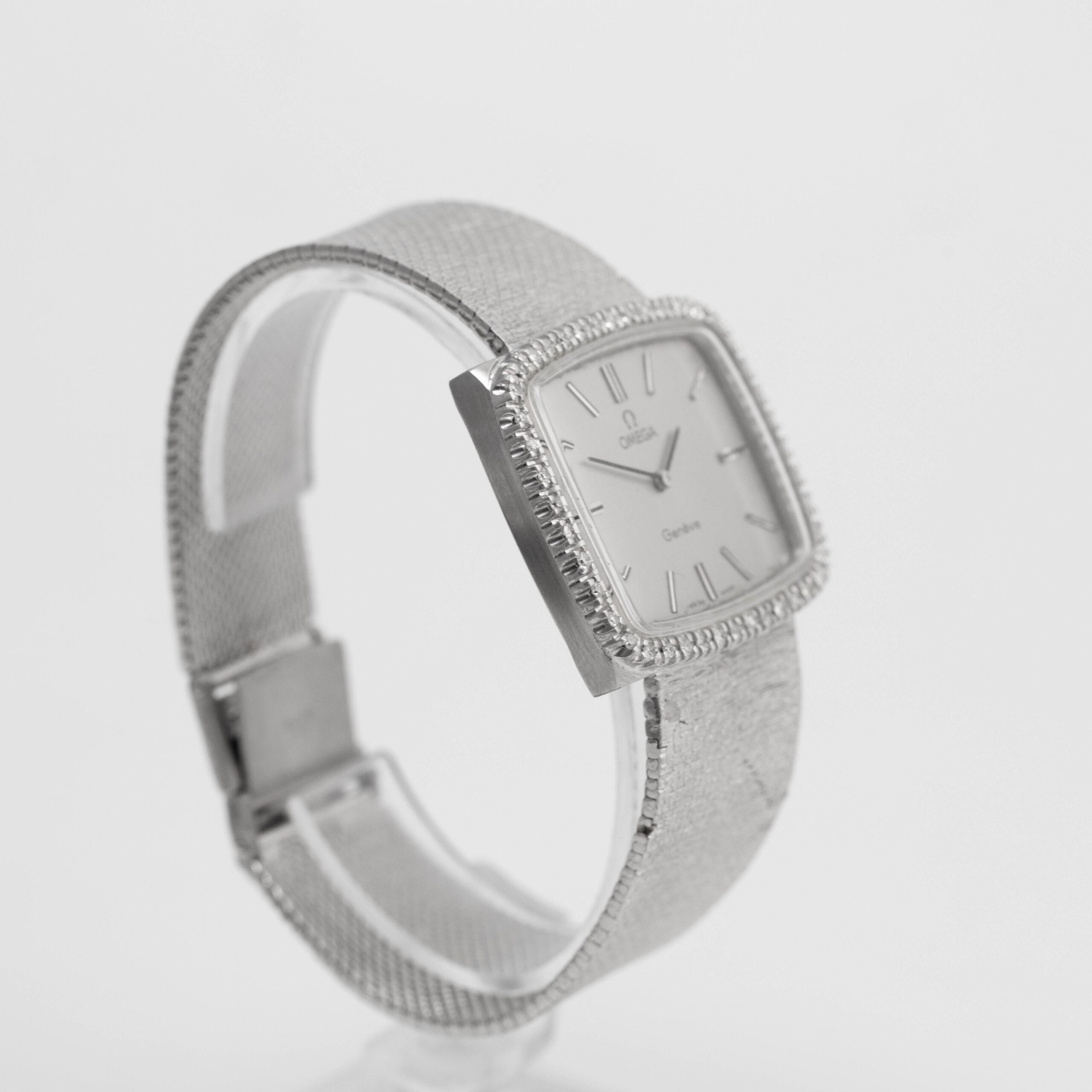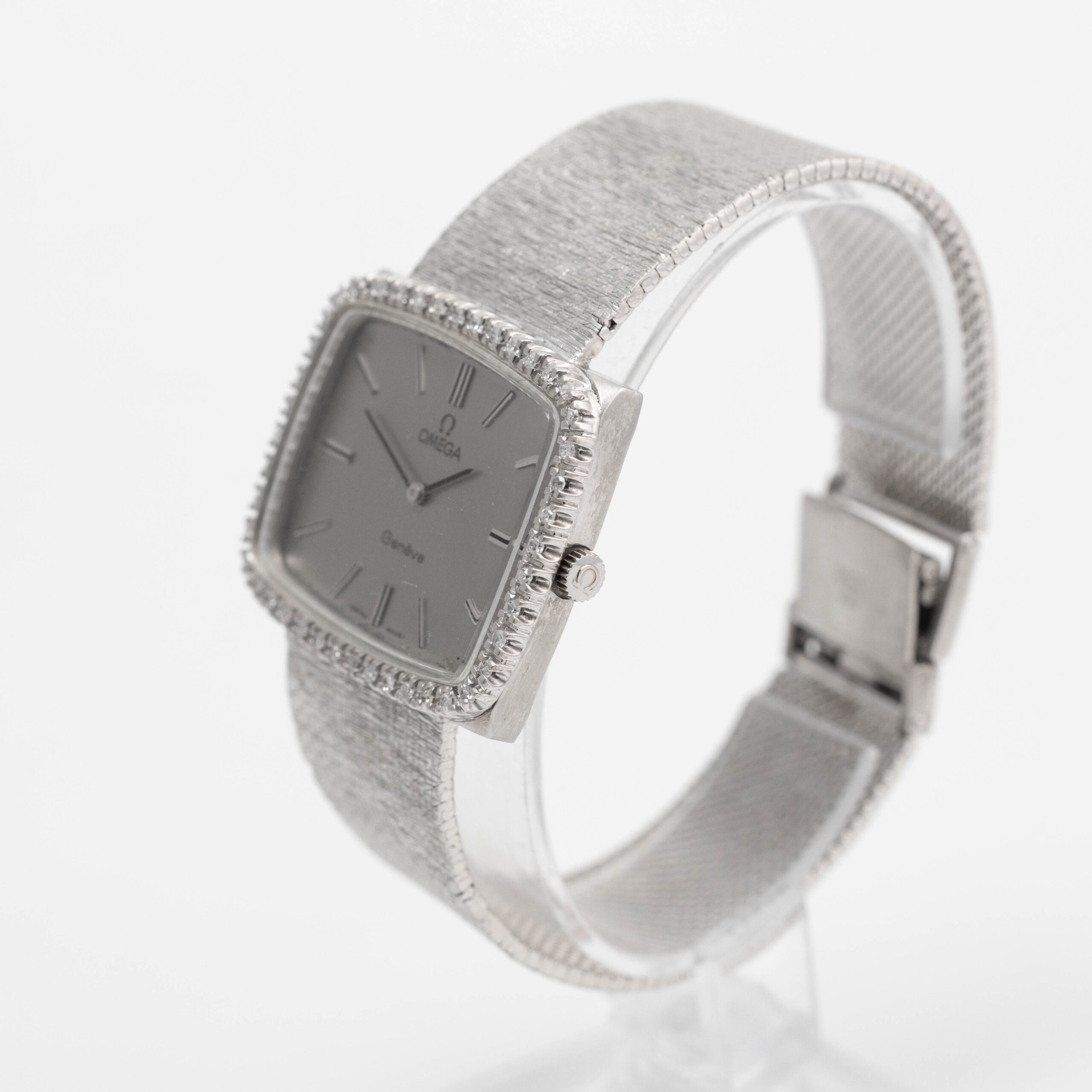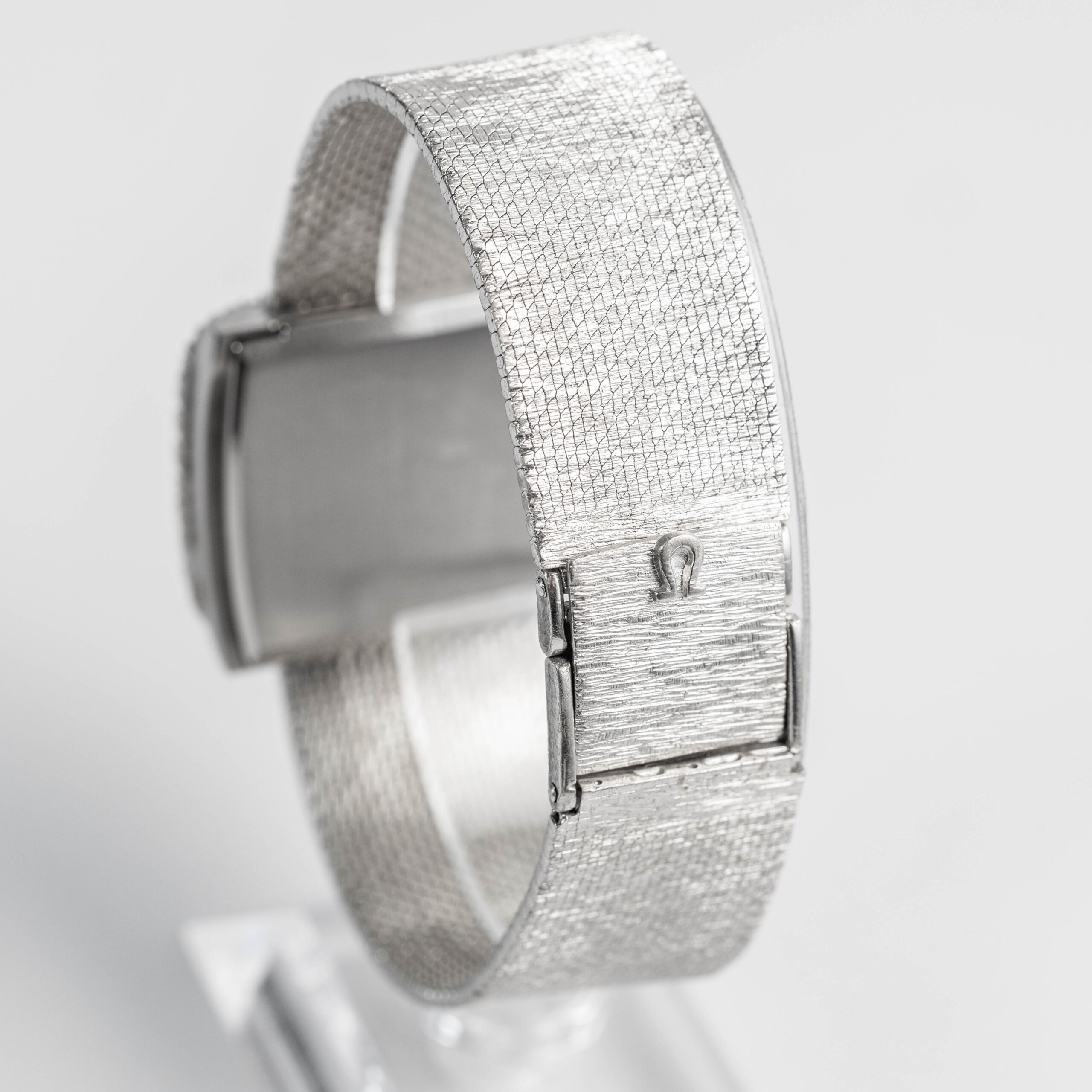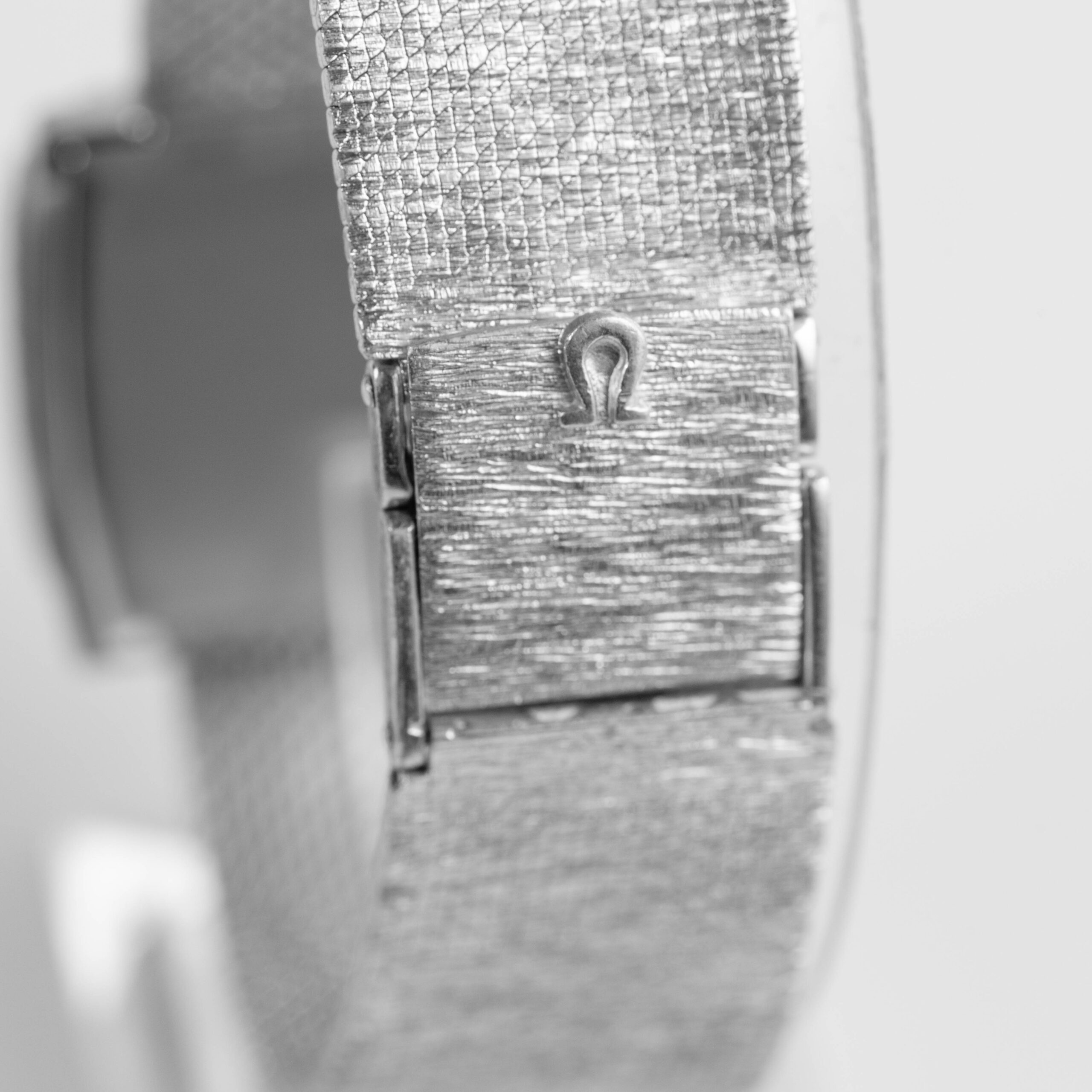 The integrated bracelet bears an 18K mark, verified by our technician as silver, and is completed with an Omega-signed clasp — perfectly matching the watch’s elegant, dressy character.